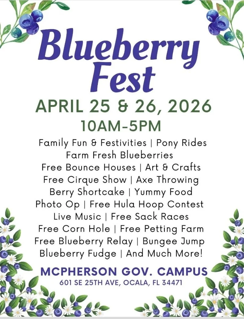 I will be at the Ocala Blueberry Festival from 10 am till 5 pm!!